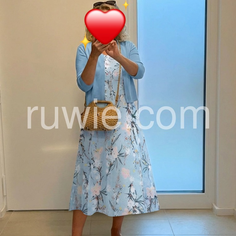 Great value for a dress and a cardigan combo. The floral design is delicate and feminine. It is incredibly comfortable to wear all day long.