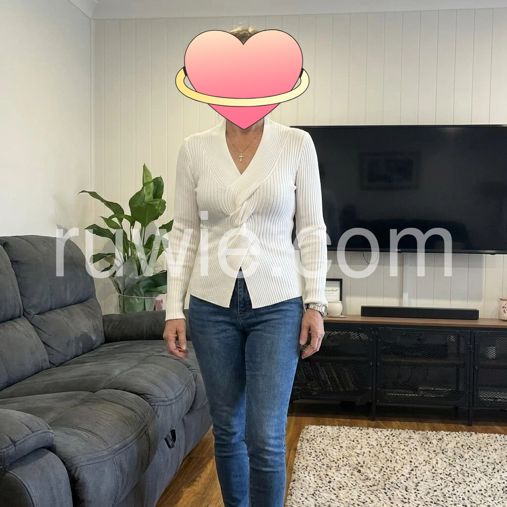 White Plain V-Neck Long Sleeve Sweater