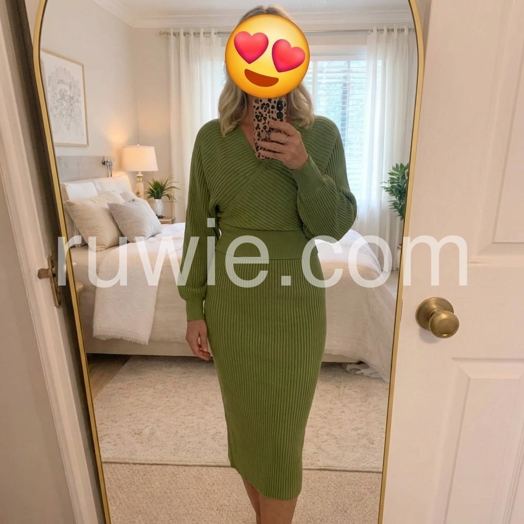 Green Long Sleeve Plain Midi Sweater Dress
