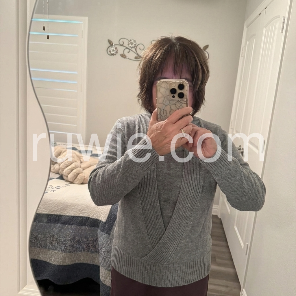 Gray V-Neck Twofer Long Sleeve Sweater