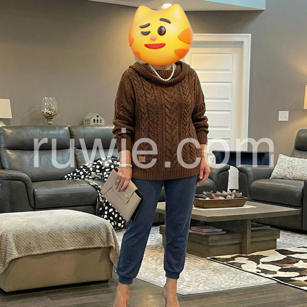 I’m obsessed with this brown sweater! The cable pattern is so detailed and looks expensive, but the price is totally reasonable. The sleeves are nice and roomy, and the hem hits at just the right spot. It washes well too, no shrinking or pilling so far. Definitely worth buying!