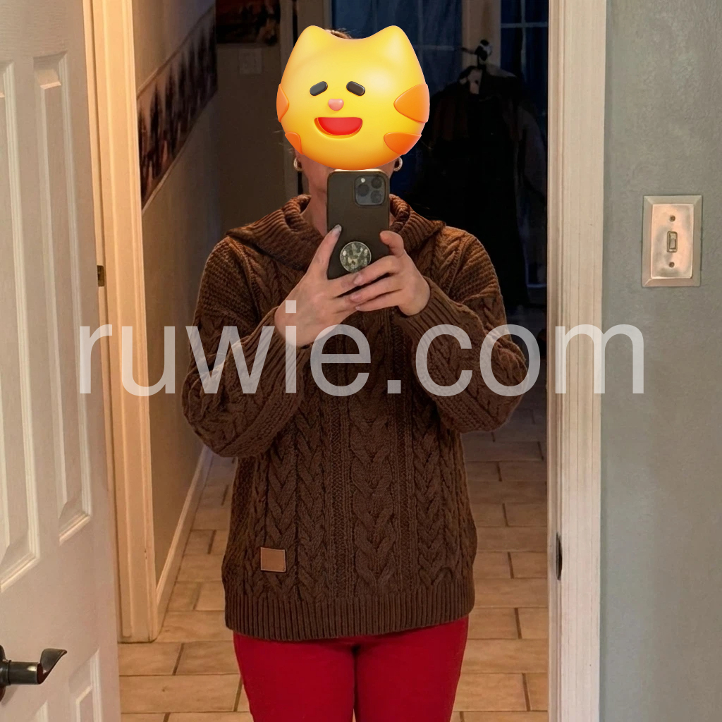 This cable knit sweater is so cozy and stylish! The cowl neck keeps me warm on chilly days, and the oversized fit is perfect for layering. The fabric feels thick and well-made, and the little leather tag adds a nice rustic touch. It’s quickly become my favorite go-to for fall and winter.